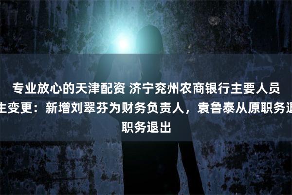 天眼查主要人员变更信息提示,济宁兖州农商银行新增刘翠芬为财务负责人,另有袁鲁泰从原职务退出。
